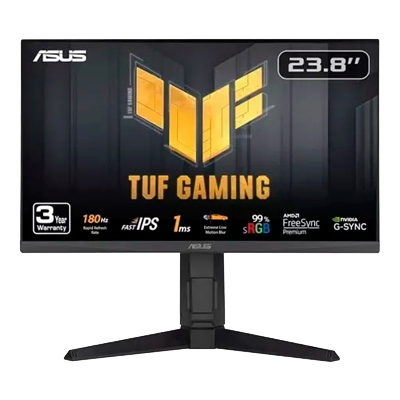 El monitor para juegos TUF Gaming VG249QL3A Full HD de 23.8 pulgadas incorpora un panel Fast IPS para juegos a 180 Hz. Las tecnologías ASUS Extreme Low Motion Blur y AMD FreeSync™ Premium, compatible con G-SYNC, VESA AdaptiveSync permiten jugar con una suavidad absoluta. Además, tiene una gama sRGB del 99% para ofrecer colores y contraste excepcionales.